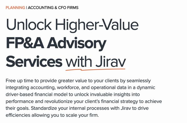 The main thing that you want to do with any financial forecasting is forecasting out the balance sheet…So being able to move around and make changes on that side of it is the reason why I would recommend Jirav.