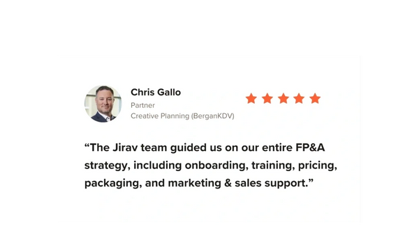 In this short session, we’ll explore partner readiness: your company & team standing and structure, client base, planning competency and advisory goals. We will also clearly demonstrate how the JIRAV FP&A platform can enable scalable financial planning across your clients.